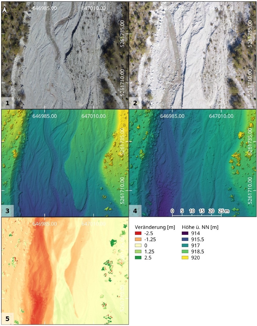 EDEO GmbH conducted a comprehensive study of the Friedergries area in the Bavarian Alps. Using UAV data and historical aerial imagery, the team analyzed hydromorphological changes in the region. The focus was on evaluating historical and current riverbed shifts, particularly in relation to the "Franzosenmauer" at the Friederlaine outlet. This project highlighted the dynamic nature of the landscape and the importance of understanding historical changes to inform future conservation and management strategies.